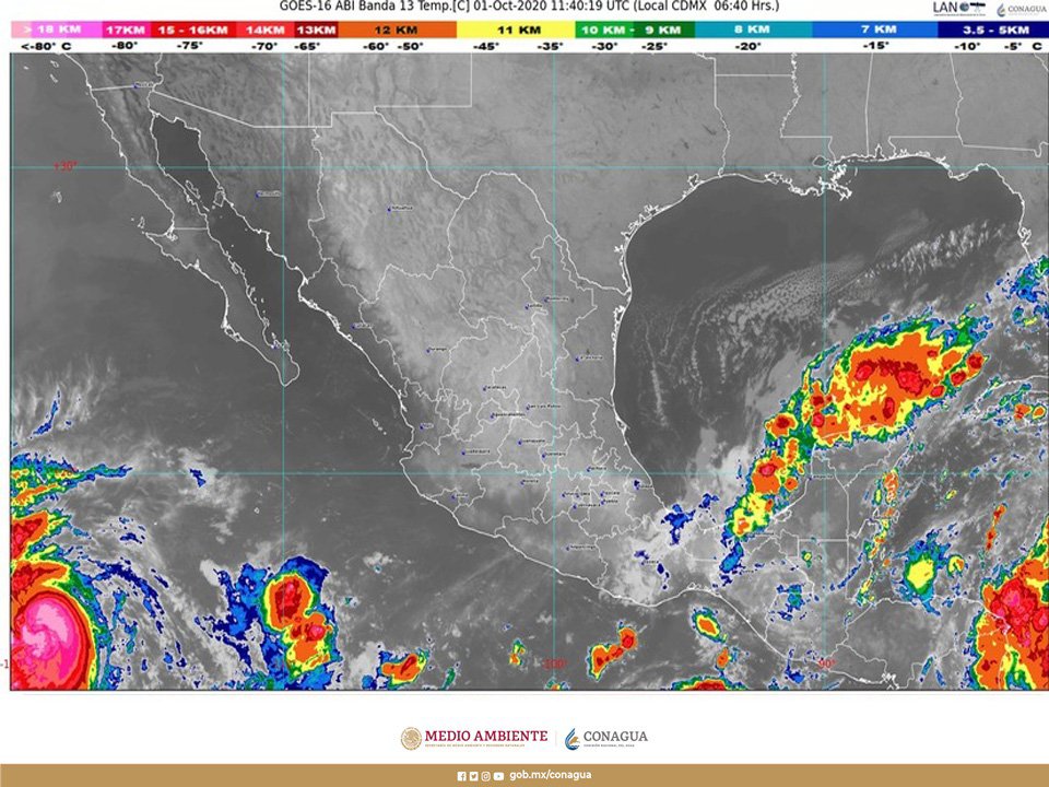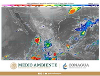 El pronóstico meteorológico para hoy es de lluvias intensas (de 75 a 150 milímetros [mm]) en Chiapas y Oaxaca; muy fuertes (de 50 a 75 mm) para Campeche, Guerrero, Michoacán, Puebla, Tabasco y Veracruz; fuertes (de 25 a 50 mm) en Colima, Estado de México, Jalisco, Morelos, Quintana Roo, Tlaxcala …