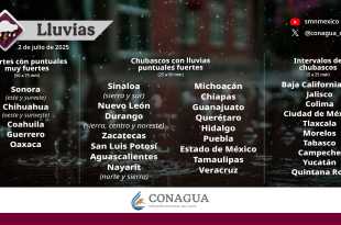 Para este miércoles, se pronostican lluvias puntuales muy fuertes (de 50 a 75 milímetros [mm]) en Sonora (este y sureste), Chihuahua (oeste y suroeste), Coahuila, Guerrero y Oaxaca; fuertes (de 25 a 50 mm) en Sinaloa (sierra y sur), Nuevo León, Durango (sierra, centro y noreste), Zacatecas, San Luis Potosí, …