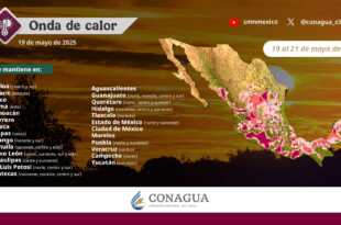 Hoy, prevalecerá la onda de calor en Sinaloa (centro y sur), Nayarit (noreste), Jalisco, Colima (este), Michoacán, Guerrero, Oaxaca, Chiapas (oeste), Durango (noreste y sur), Coahuila (suroeste, centro y este), Nuevo León (oeste, suroeste, sur y este), Tamaulipas (oeste y suroeste), San Luis Potosí (norte, centro y sur), Zacatecas (noroeste, …
