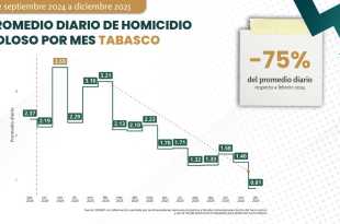 Leer másTabasco reporta menos de un homicidio diario durante 2025; delito disminuye 75%