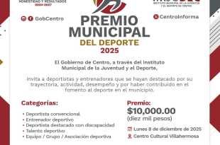 • Se busca reconocer a jóvenes deportistas y entrenadores, así como el crecimiento personal en diversos ámbitos, con el propósito de fortalecer el tejido social Villahermosa, Tab., 10 de noviembre de 2025.- El Gobierno de Centro convoca a jóvenes de entre 15 y 29 años, así como a deportistas, entrenadores, …