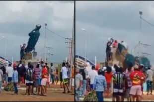 Derriban estatuas de Hugo Chávez