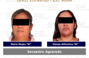 La Fiscalía General del Estado (FGE) de Tabasco obtuvo el auto de vinculación a proceso, además que se ratificó la medida cautelar de prisión preventiva en contra de Danae Alfonsina “N” y María Reyes “N”, de quienes se presume su participación en un hecho de secuestro, cometido en agravio de …