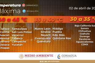 La onda de calor mantendrá, en horas de la tarde, ambiente de caluroso a muy caluroso en gran parte del territorio nacional con temperaturas máximas de 40 a 45 grados Celsius en Campeche, Chiapas, Colima, Guerrero, Jalisco, Michoacán, Morelos, Oaxaca, San Luis Potosí, Tabasco, Tamaulipas, Veracruz y Yucatán; de 35 …