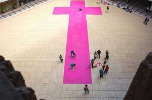 Una enorme cruz de color rosa, que representa los 800 feminicidios perpetrados en los últimos 10 años en el estado mexicano de Sinaloa, fue pintada este miércoles por colectivos de mujeres en el patio central del Palacio de Gobierno de la entidad. Las activistas escogieron el día de la Independencia …