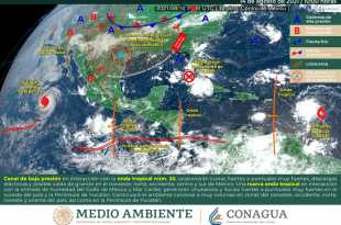 Para hoy, se pronostican lluvias muy fuertes (de 50.1 a 75 [mm]) en zonas de Chiapas, Chihuahua, Colima, Sonora, Estado de México, Jalisco y Michoacán; fuertes (de 25.1 a 50 mm) en sitios de Campeche, Ciudad de México, Durango Guerrero, Morelos, Nayarit, Oaxaca, Puebla, Quintana Roo, Sinaloa, Tabasco y Veracruz; …