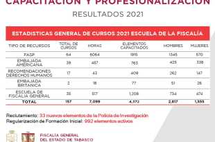 Se cuenta con el apoyo invaluable de agencias internacionales y otras instituciones para este objetivo Durante el 2021, la Fiscalía General del Estado (FGE) de Tabasco continúo fortaleciendo la profesionalización de sus servidores públicos, con el único fin de establecer una política laboral basada en el orden, la disciplina y …