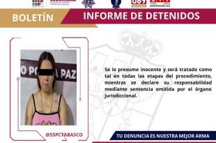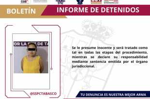La Secretaría de Seguridad y Protección Ciudadana (SSPC), en coordinación con la Fuerza Interinstitucional de Reacción Táctica (FIRT) Olmeca, detuvo a una mujer identificada como Martha María “N” en la Av. Aluminio, Ciudad Industrial, por su probable responsabilidad en delitos contra la salud. Durante la acción operativa, a la detenida …