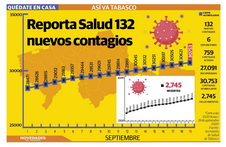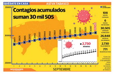 Leer másA 6 meses de la pandemia registra Tabasco 30,621 infectados y 2,739 muertes por COVID-19