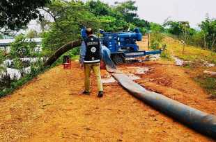A marchas forzadas trabaja personal del Gobierno de Jonuta, Protección Civil de Tabasco y soldados del Ejército poniendo sacos se arena, escombro y troncos como barricada para quitar fuerza al agua y evitar que se rompiera la carretera Jonuta a Zapatero a la altura de Cocoyolar, lo cual interrumpiría la …