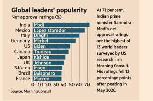 En su portada de este lunes, el influyente diario Financial Times incluye una encuesta de popularidad de líderes del mundo, en la que el presidente mexicano Andrés Manuel López Obrador aparece en segundo lugar. Se trata de una medición de Morning Consult, que ubica a AMLO con un 65% de …
