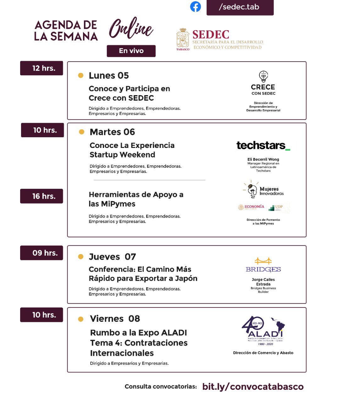 Como parte de las acciones para apoyar el emprendimiento, el Gobierno del Estado a través de la Secretaría para el Desarrollo Económico y la Competitividad (Sedec), puso en marcha la jornada de conferencias virtuales con el objetivo de orientar las capacidades y habilidades de quienes tienen una idea de negocio. …
