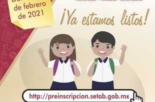 Este martes 2 de febrero inicia el proceso de preinscripción en línea para primero, segundo y tercer grado de Preescolar y quienes van a ingresar a primero de Primaria o Secundaria, en escuelas públicas de la entidad, ciclo escolar 2021-2022, informó la Secretaría de Educación del Estado de Tabasco (SETAB). …