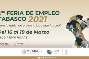 La Secretaría de Gobierno a través del Servicio Estatal de Empleo Tabasco (SNET), realizarán del 11 al 13 de agosto la primera «Feria Nacional de Empleo 2021 para Jóvenes e Inclusión Laboral». El evento virtual que se desarrollará de 9:00 a 15:00 horas se realizará en el marco del Día …