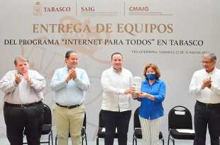 El Gobierno de Tabasco entregó este miércoles 585 equipos tecnológicos del programa Internet para Todos, como parte de una estrategia que busca garantizar este servicio de forma gratuita a 539 escuelas de nivel básico y 46 bibliotecas en comunidades de Centro, Comalcalco, Cunduacán, Jalpa de Méndez, Jonuta, Macuspana y Nacajuca. …