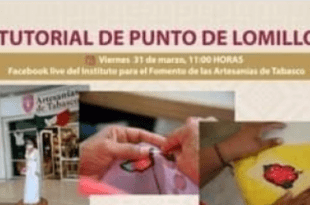 Como parte del programa Marzo Artesanal y para fomentar el gusto por los diseños regionales, el Instituto para el Fomento de las Artesanías de Tabasco (IFAT), invita a participar en el tutorial de “Bordado de punto de Lomillo”. La Artesana Paula Torres Isidro, del municipio de Nacajuca, con 20 años …