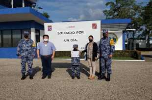 Esta mañana, en las instalaciones de la Base Aérea Militar número 16 en San Carlos, Macuspana, se llevó a cabo la entrega del reconocimiento “Soldado por un día”, al menor de 8 años, Evaristo Sarao Hernández. El menor se mostró contento al recibir dicha distinción.