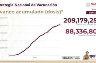 El Informe Técnico Diario refiere que, desde el 24 de diciembre de 2020 hasta esta fecha, se han suministrado 209 millones 179 mil 257 biológicos a 88 millones 336 mil 802 personas. La Secretaría de Salud informa que han recibido la vacuna de refuerzo 53 millones 157 mil 386 personas …