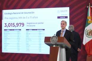 Hasta este momento se encuentran registrados tres millones 015 mil niñas y niños de cinco a 11 años para recibir la vacuna contra COVID-19, lo que demuestra la respuesta positiva por parte de padres, madres de familia y personas cuidadoras. Además facilita la programación para el inicio de la inmunización …