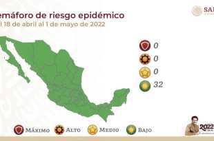 Como resultado de la disminución sostenida de casos de COVID-19, desde el lunes 18 de abril y hasta el domingo 1º de mayo, las 32 entidades federativas continuarán en color verde del Semáforo de Riesgo Epidémico, informa la Secretaría de Salud. La semana epidemiológica número 13 cierra con reducción de …