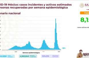 En la semana epidemiológica número 12, del 20 al 26 de marzo, se registra reducción de 18 por ciento en el número de contagios de COVID-19 respecto al periodo previo. Además, se reportan ocho mil 152 personas que presentaron signos y síntomas relacionados con COVID-19 en los últimos 14 días; …