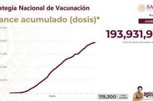 Con la aplicación de 293 mil 838 vacunas de este miércoles, en México se han aplicado 192 millones 422 mil 777 dosis contra COVID-19 a 85 millones 603 mil 132 personas, desde el inicio de la Política Nacional de Vacunación contra el Virus SARS-CoV-2 para la Prevención de COVID-19 en …