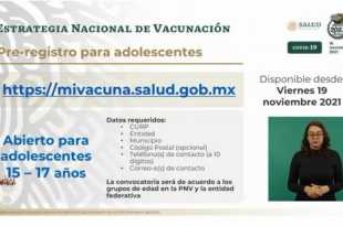 Los menores de 15 a 17 años sin comorbilidades ya se podrán vacunar contra COVID-19 en México; para hacerlo se deberán registrar en la página https://mivacuna.salud.gob.mx/ a partir del próximo viernes 19 de noviembre, informó el subsecretario de Prevención y Promoción de la Salud, Hugo López-Gatell. “A partir de este …