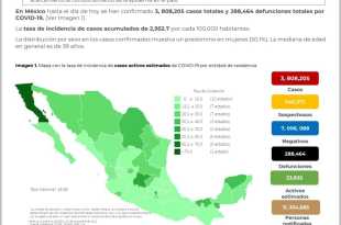 En México hasta el día de hoy se han confirmado 3, 808,205 casos totales y 288,464 defunciones totales por COVID-19. La tasa de incidencia de casos acumulados de 2,952.7 por cada 100,000 habitantes. Al corte de información del día de hoy, se registraron 288,464 defunciones totales de COVID-19. Hasta el …
