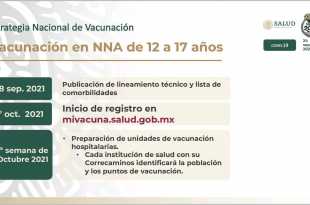 En concordancia con la Política Nacional de Vacunación contra el Virus SARS-CoV-2, a partir de octubre se vacunará contra COVID-19 a niñas, niños y adolescentes que padecen alguna enfermedad crónica, así como adolescentes embarazadas, ya que se trata de personas más susceptibles a desarrollar la forma grave de la infección …