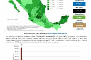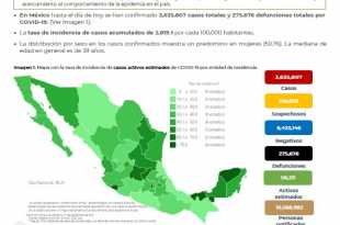 En México hasta el día de hoy se han confirmado 3,635,807 casos totales y 275,676 defunciones totales por COVID-19. La tasa de incidencia de casos acumulados de 2,819.1 por cada 100,000 habitantes. Al corte de información del día de hoy, se registraron 275,676 defunciones totales de COVID-19. Hasta el día …