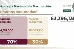 La Secretaría de Salud informa que 63 millones 396 mil 136 personas han sido vacunadas contra COVID-19. De ellas, 70 por ciento, es decir 44 millones 511 mil, cuenta con esquema completo, y 18 millones 885 mil 136 tienen al menos una dosis, que representan 30 por ciento. Como parte …