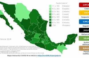En México hasta el día de hoy se han confirmado 3,175,211 casos totales y 251,319 defunciones totales por COVID-19. Al corte de información del día de hoy, se tienen registrados 138,027 casos activos con una tasa de incidencia de 107.02 por 100 mil habitantes (06 al 19 agosto del 2021). …