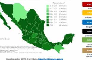 En México hasta el día de hoy se han confirmado 3,101,266 casos totales y 248,380 defunciones totales por COVID-19. La Ciudad de México, el Estado de México, Nuevo León, Jalisco, Tabasco, Veracruz, San Luis Potosí, Puebla, Guanajuato, Tamaulipas, Michoacán, Quintana Roo, Guerrero, Nayarit y Colima, son las entidades con mayor …