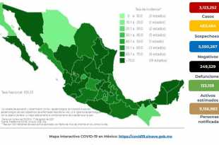 En México hasta el día de hoy se han confirmado 3,123,252 casos totales y 249,529 defunciones totales por COVID-19. Al corte de información del día de hoy, se registraron 249,529 defunciones totales de COVID-19. Hasta el día de hoy, se tienen 12,786 defunciones sospechosas de COVID-19 que incluyen las pendientes …