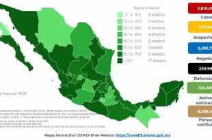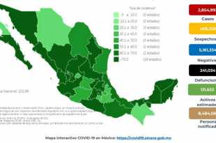 En México hasta el día de hoy se han confirmado 2,854,992 casos totales y 241,034 defunciones totales por COVID-19. La Ciudad de México, el Estado de México, Jalisco, Nuevo León, Veracruz, Guerrero, Tabasco, Quintana Roo, Sinaloa, Nayarit y San Luis Potosí son las entidades con mayor número de casos activos …
