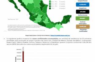 En México hasta el día de hoy se han confirmado 2,726,160 casos totales y 237,954 defunciones totales por COVID-19. La Ciudad de México, el Estado de México, Jalisco, Nuevo León, Sinaloa, Veracruz y Quintana Roo son las entidades con mayor número de casos activos (>3,000 casos), seguida de Tabasco, Guerrero, …
