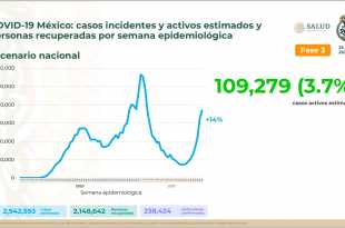 La semana epidemiológica 28 inicia con incremento de 14 por ciento en el número de casos estimados, y 109 mil 279 casos activos, que representan 3.7 por ciento de todos los reportados desde el inicio de la pandemia, mientras que dos millones 148 mil 642 personas se han recuperado de …
