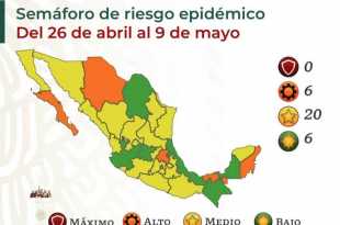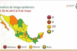 A partir del 26 de abril se encuentran en semáforo Naranja: Baja California Sur, Chihuahua, Ciudad de México, Hidalgo, Quintana Roo y Tabasco. En semáforo Amarillo: Aguascalientes, Baja California, Colima, Durango, Estado de México, Guerrero, Michoacán, Morelos, Nayarit, Nuevo León, Oaxaca, Puebla, Querétaro, San Luis Potosí, Sinaloa, Sonora, Tamaulipas, Tlaxcala, …
