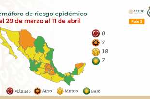 A partir de hoy lunes 29 de marzo se encuentran en semáforo Naranja: Ciudad de México, Chihuahua, Estado de México, Hidalgo, Puebla, Querétaro y Yucatán. En semáforo Amarillo: Aguascalientes, Baja California, Baja California Sur, Colima, Durango, Guanajuato, Guerrero, Michoacán, Morelos, Nuevo León, Oaxaca, Quintana Roo, San Luis Potosí, Sinaloa, Sonora, …