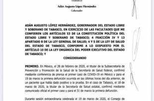 Al emitir un decreto por el que se establecen medidas extraordinarias de inmediata ejecución para contener el repunte de casos positivos de COVID en Tabasco, el gobernador Adán Augusto López Hernández aseveró que así como es obligación del Estado garantizar la salud de los tabasqueños, también es responsabilidad de todos …