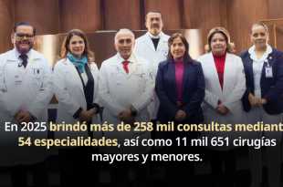 Comprometido en ofrecer servicios de salud de alta calidad a quienes más lo necesitan, el Hospital Juárez de México (HJM) otorgó en 2025 más de 258 mil consultas de 54 especialidades y más de 11 mil cirugías mayores y menores, lo que fortalece su misión de brindar acceso universal a …