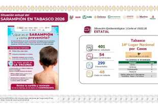 Leer másCoordinación interinstitucional de Gobiernos del Pueblo y de México ha permitido frenar la incidencia de sarampión en Tabasco