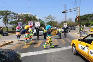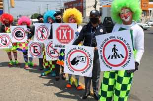 Con entusiasmo, payasitos del escuadrón vial y educadoras de la Policía Estatal de Caminos (PEC) reiteraron el llamado a la ciudadanía de respetar el Reglamento de Tránsito para prevenir accidentes en la vía pública. Con frases como “Demuestra tu cultura vial”, “Usa el paso peatonal”, “Evita contratiempos”, “Porta tus documentos”; …