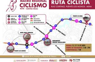 El Instituto de la Juventud y el Deporte de Tabasco, en coordinación con la Secretaría de Seguridad y Protección Ciudadana, la Policía Estatal de Caminos y el Instituto de Protección Civil de Centro, informan a la ciudadanía sobre la ruta ciclista donde se estarán realizando las competencias del Macro Regional …
