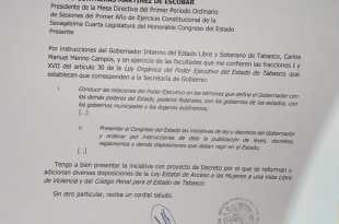 El gobernador Carlos Manuel Merino Campos envió al Congreso del Estado la iniciativa con proyecto de Decreto encaminada a concretar las reformas legislativas que permitan hacer realidad en Tabasco la llamada “Ley Olimpia”. En respuesta al compromiso asumido desde la máxima tribuna popular del estado, durante la entrega del Tercer …