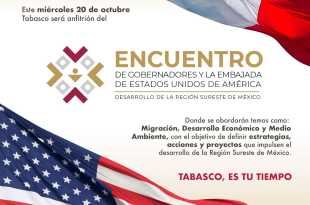 El Gobierno de la República, la Embajada de los Estados Unidos en México y el Gobierno del Estado, celebrarán este próximo 20 de octubre en Tabasco, una reunión de coordinación con Gobernadores del Sureste para definir estrategias, acciones y proyectos que impulsen el desarrollo de la región. Este encuentro, es …