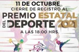 Tal y como lo señala la convocatoria al Premio Estatal del Deporte de Tabasco 2021 (PED2021), el periodo de inscripciones y recepción de propuestas, cerrará este lunes 11 de octubre a las 18:00 horas, El Instituto de la Juventud y el Deporte de Tabasco, (Injudet), recuerda a las y los …