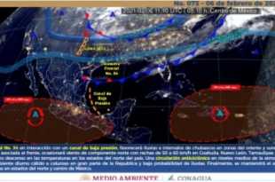 Se mantendrá ambiente cálido a caluroso con temperaturas máximas de 30 a 34 grados centígrados y mínimas de 19 a 21 grados Un canal de baja presión al Occidente del Estado interactuando con una circulación anticiclónica a niveles medios de la atmósfera favorecerá lloviznas aisladas de 0.1 a 5 milímetros …